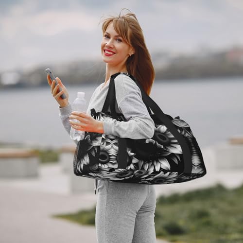 black and white sunflowers print Weekender Overnight Carry On Bag Gym Luggage Bag Duffel Bag for Travel Women 5
