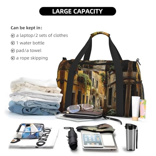 Italian Old Street print Weekender Overnight Carry On Bag Gym Luggage Bag Duffel Bag for Travel Women 7