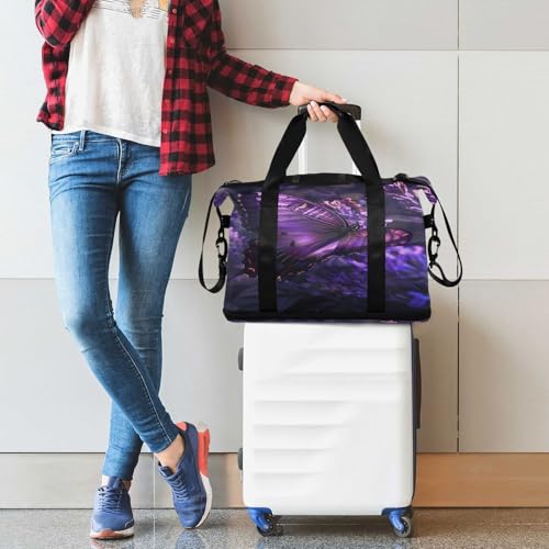 Butterfly Purple Flower4 Travel Duffel Bag Waterproof Gym Sport Tote Bag Carry On Weekender Bag with Compartment 5