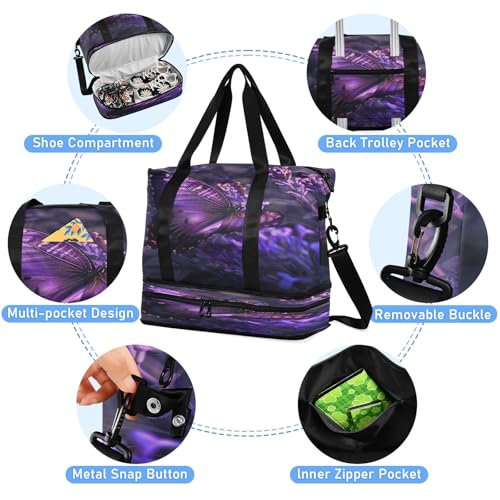 Butterfly Purple Flower4 Travel Duffel Bag Waterproof Gym Sport Tote Bag Carry On Weekender Bag with Compartment 3