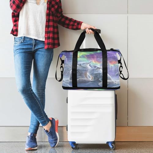 A Beautiful White Wolf and Gray Colored Fox Travel Duffel Bag Waterproof Gym Sport Tote Bag Carry On Weekender Bag with Compartment 7