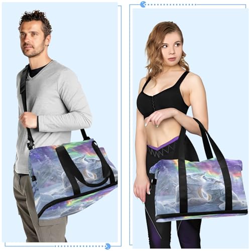 A Beautiful White Wolf and Gray Colored Fox Travel Duffel Bag Waterproof Gym Sport Tote Bag Carry On Weekender Bag with Compartment 4