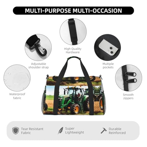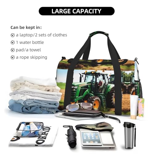 • Activity Accommodator: Company Farm Tractor print Gym Bag not only houses gym gear but also effortlessly accommodates essentials for weekend retreats and intense outdoor activities like hunting. Its flexible design makes it a staple for fitness enthusiasts and adventure seekers alike.