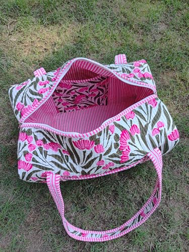 HOT ! Indian Block Print Quilted Bag, Decorative Floral Print Weekender Bags, Beautiful Colorful Travel Overnight Bags, Large Size Handmade Cotton Quilted Duffle Bags For Women Gifts