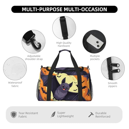 HOT ! Halloween bat Print Travel Duffle Bag - Foldable Personal Item Travel Bag for Women & Men,Carry-On Convertible Crossbody Tote Bags with Adjustable Shoulder Strap & Pockets 13x10.2x19.7 in