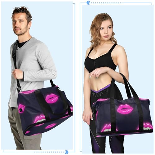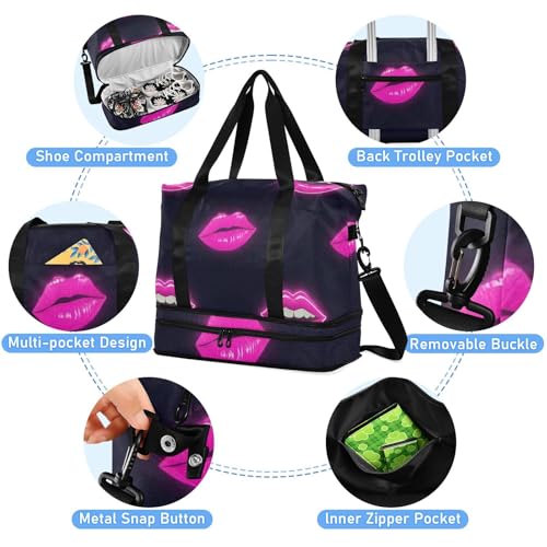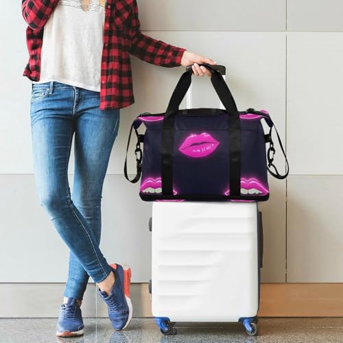 Pink Fluorescent Neon Lips Tote Bag Weekender Duffel Bag with Adjustable Strap for Gym 2 Pcs Set 7
