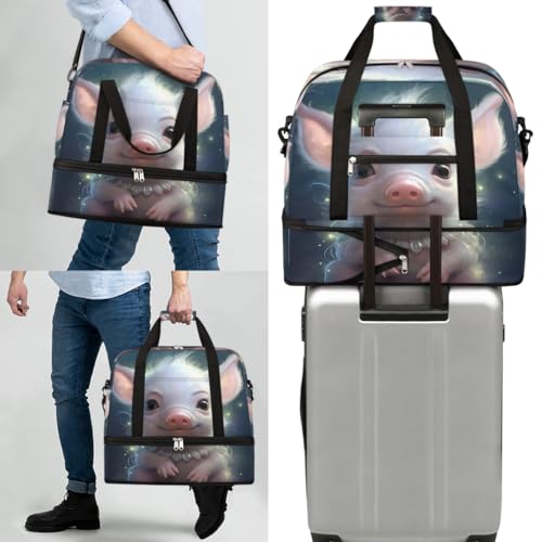 HOT ! Animal Cute Pigs Travel Duffle Bags With Shoes Compartment for Women Men Weekender Overnight Bag Foldable Sports Tote Gym Carry On Luggage Handlebag for Travel Yoga Hospital Workout