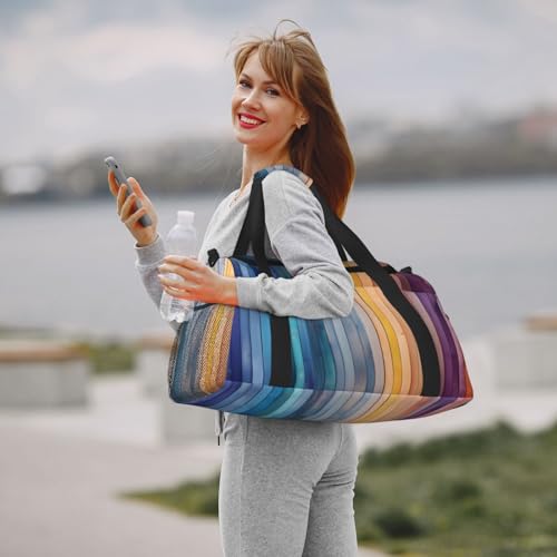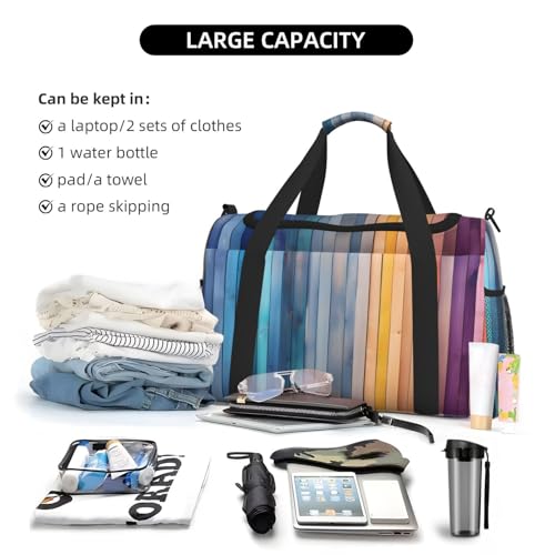 Rainbow Wooden Duffle Bag Foldable Travel Tote Bag Carry On Large Weekender Overnight Bags Waterproof Gym Bag For Women Men 6