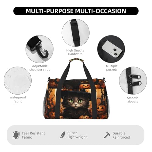 HOT ! Pumpkins Black Cat Duffle Bag Foldable Travel Tote Bag Carry On Large Weekender Overnight Bags Waterproof Gym Bag For Women Men