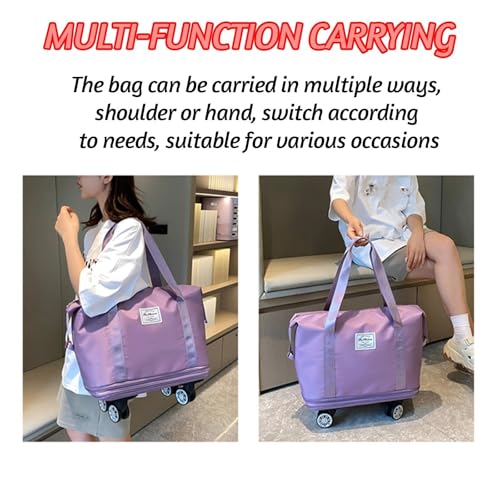 • Easy-to-Use Removable Wheels: no more hassle when navigating through airports, train stations, or busy streets. this rolling expandable luggage is designed with removable wheels that can be attached or detached in under 30 seconds. It’s perfect for those moments when you need to switch between carrying your bag and rolling it effortlessly. The Wheeled duffel bag offers maximum versatility for any situation