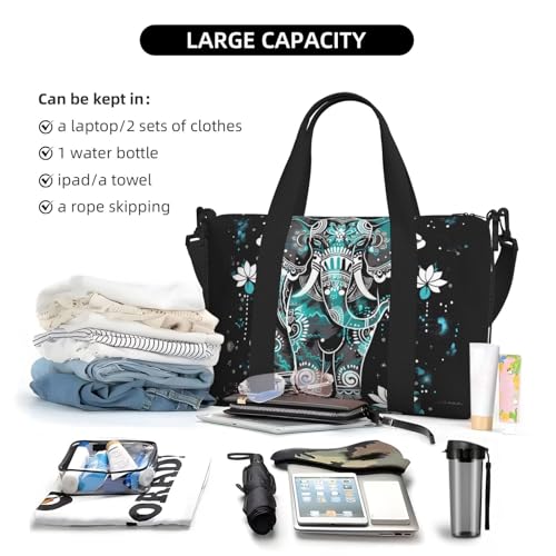 More information about Travel Duffle Bag Ethnic Elephant Lotus Flower Weekender Overnight Bags Luggage Bag for Women Men Waterproof Sports Gym Bag Hand Bag with Shoulder Strap