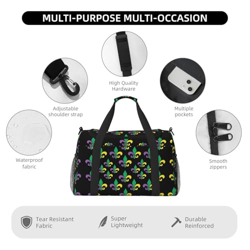 Retro Mardi Pattern Duffel Travel Gym Sports Overnight Weekend Duffle Bags For Men Women 4