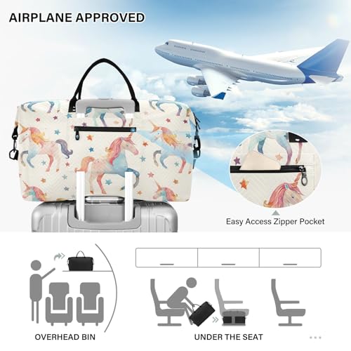 HOT ! Childrens Cartoon Watercolor Unicorn Lite Color MinimTravel Duffle Bag,Large Weekender Travel Bag for Women Men Waterproof Luggage Bag with Trolley Sleeve,Airplane Travel Essentials for Flying