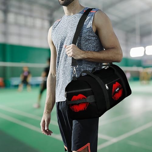 Red Lips Gym Bag Travel Duffel Bag Sports Tote Bag Workout Bag Weekender Bag for Women Men 5