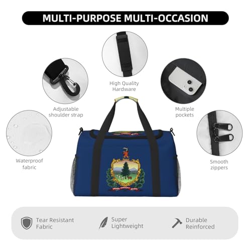 Vermont State Flag print Travel Duffle Bag Gym Bag for Women,Puffer Tote Bag,Weekender Overnight Bag Organizer 7