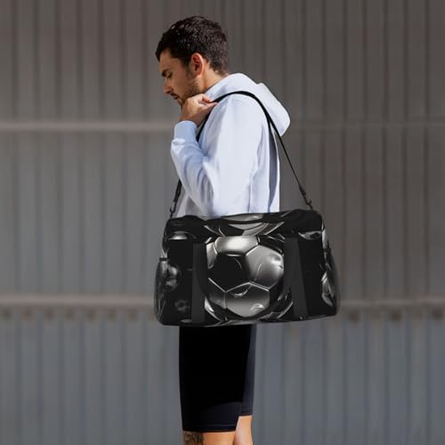 HOT ! Soccer Black Travel Duffel Bag Lightweight Waterproof Carry On Tote Bag Foldable Weekender Overnight Bags Sport Gym Bag For Women Men