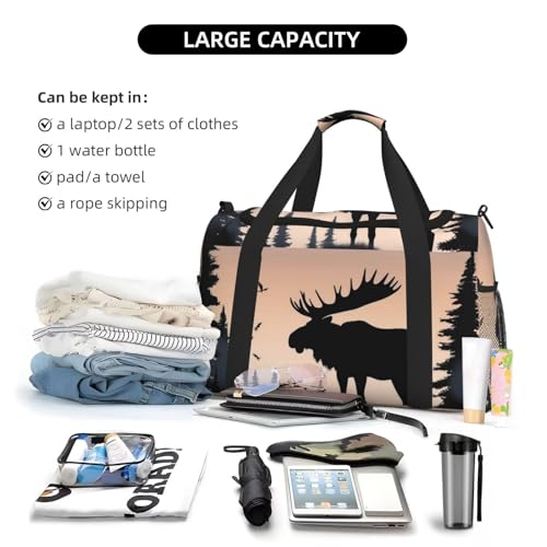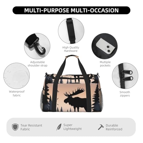 HOT ! Moose Mountain Pine Tree Wilderness Travel Duffel Bag Lightweight Waterproof Carry On Tote Bag Foldable Weekender Overnight Bags Sport Gym Bag For Women Men
