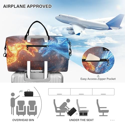 Travel Duffel Bag Abstruct Dragon Fire Blue Gym Bag Sports Tote Bag with Multiple Interior Pockets Shoulder Weekender Bag for Women Men with Toiletry Bag 20.5”x 7.9”x 13.8 5