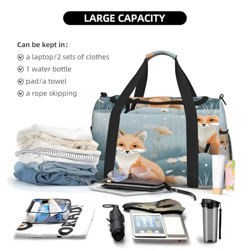 Forest Fox Travel Duffel Bag with Strap Multi Pockets Sports Bag Handbag Large Shoulder Bag for Gym Weekend Fitness Camping 6
