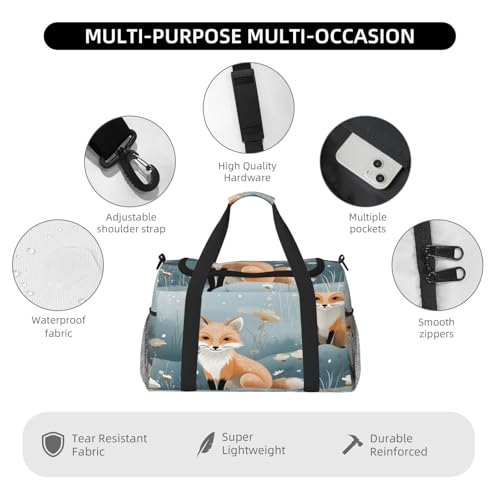 Forest Fox Travel Duffel Bag with Strap Multi Pockets Sports Bag Handbag Large Shoulder Bag for Gym Weekend Fitness Camping 4