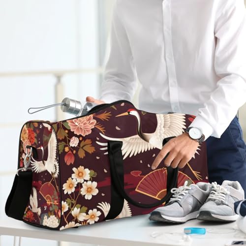 Travel Duffel Bag, Japan White Crane Floral Flower Sports Tote Gym Bag Foldable Western Aztec Weekender Bag Carry on Luggage Handle Bag Overnight Shoulder Bag for Women Men,A-073 1