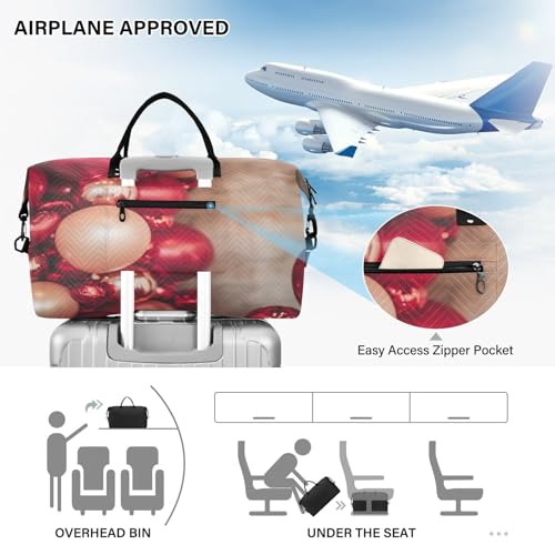 Burbuja Travel Duffel Bag for Women, Valentine Red Balloon Weekender Overnight Bag Shoulder Carry On Tote Bag with Trolley Sleeve, Gym Bag with Toiletry Bag, Large Size 7