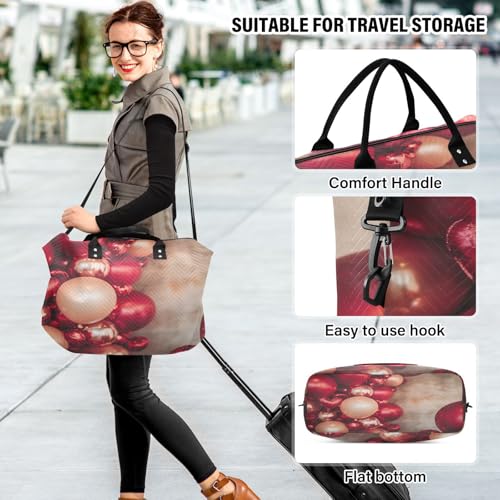 HOT ! Burbuja Travel Duffel Bag for Women, Valentine Red Balloon Weekender Overnight Bag Shoulder Carry On Tote Bag with Trolley Sleeve, Gym Bag with Toiletry Bag, Large Size