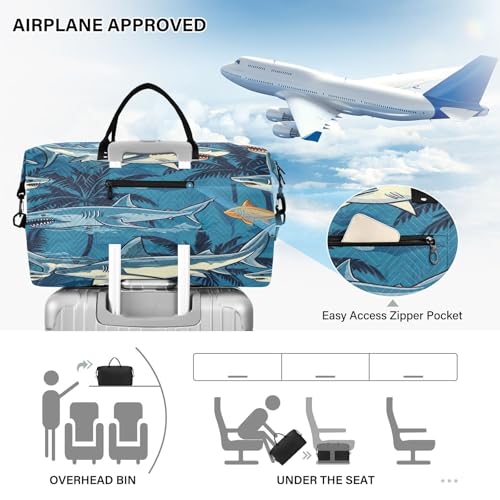 Shark Flower Travel Duffel Bag Large Capacity Weekender Bag with Toiletry Bag Detachable Shoulder Strap Travel Tote Bag for Women 7
