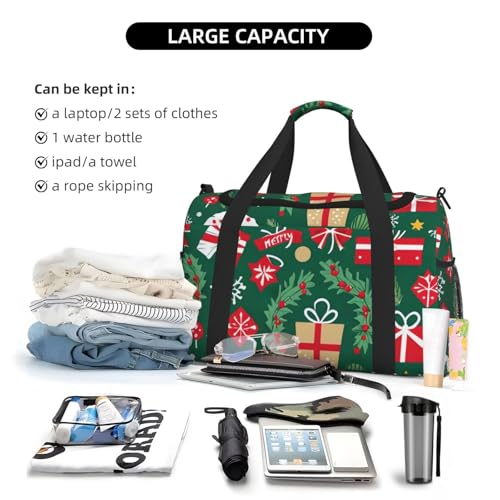 HOT ! Merry Christmas Pattern Print Travel Duffel Bag for Men & Women, Foldable Travel Bags and Spacious Weekender Tote Bag for Storage Toiletry Luggage Personal Item
