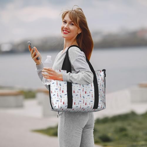 • Women's Overnight Bag: This Nautical Lighthouse Sailboat handbag can be carried by hand or worn as a tote bag for women. You can pack clothes, magazines, documents, cell phones, keys, laptops, glasses, toiletries, and more in this travel bag. The multi-functional overnight bags for women helps you organize and store your items easily, allowing for convenient access whenever you need them