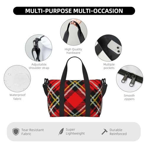 Plaid Red and Black print Gym Bag for Women,Carry on Weekender Overnight Duffle Bag,Personal Item Tote Bag 7