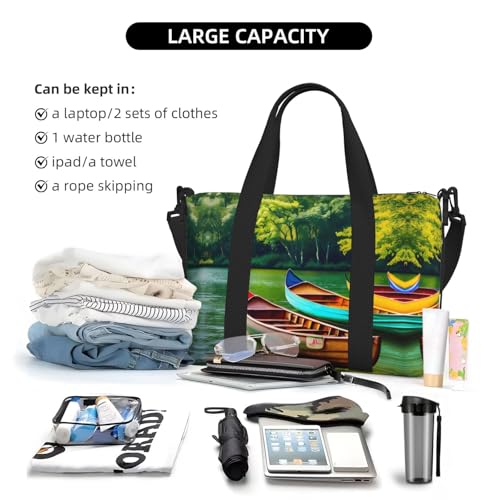 Lake with Boats Canoes Park print Gym Bag for Women,Carry on Weekender Overnight Duffle Bag,Personal Item Tote Bag 6