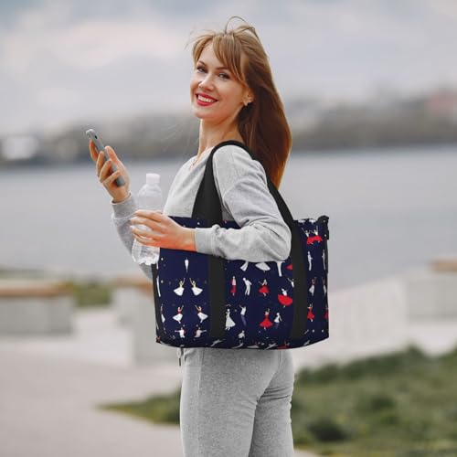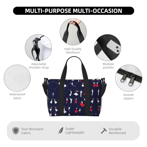 Ballroom Dance Pattern print Gym Bag for Women,Carry on Weekender Overnight Duffle Bag,Personal Item Tote Bag 4