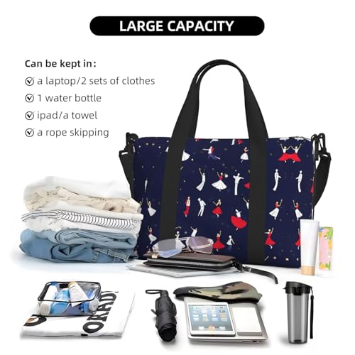 Ballroom Dance Pattern print Gym Bag for Women,Carry on Weekender Overnight Duffle Bag,Personal Item Tote Bag 5