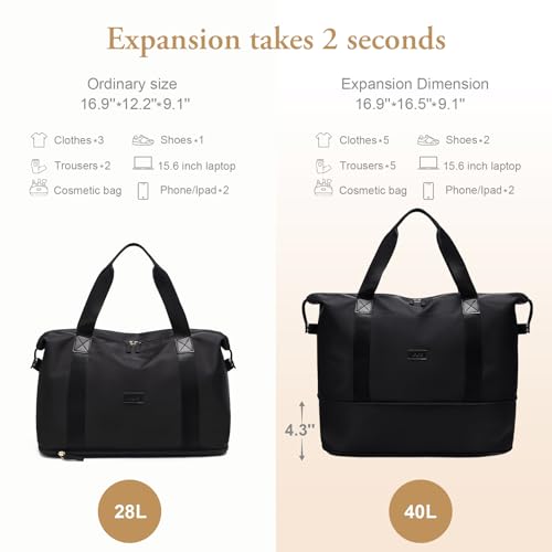 HOT ! VNINE Travel Duffel Bags for Women Men Expandable Duffel Bag Tote Sport Bag Hospital Weekender Bag for Women Delivery Bags for Airplanes Black