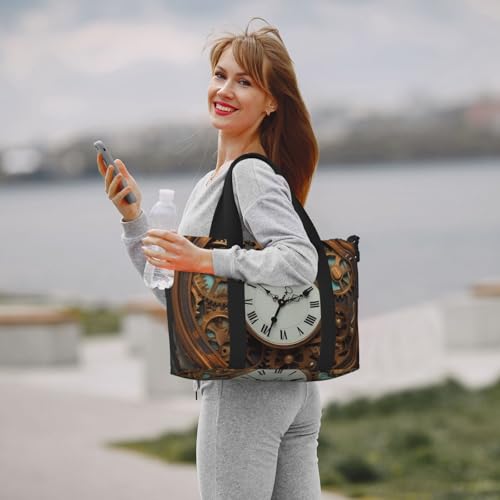 Travel Duffel Bags Personal Item Bag Carry on Luggage Bag Training Handbag Lightweight Waterproof Sports Gym Bag Rusty Steampunk Clock Weekender Bag for Women Men 5