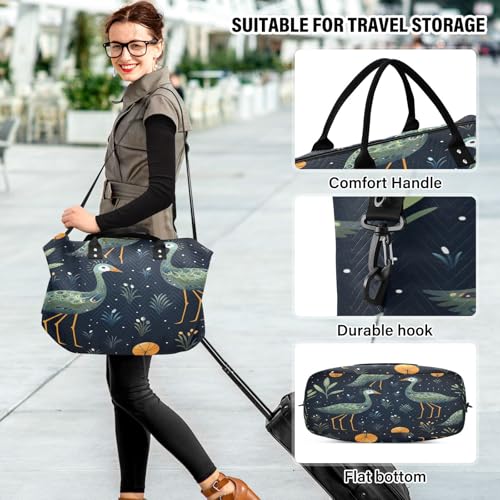 HOT ! Funny Green Ostrich Travel Duffel Bags Gym Bag Weekender Handbag with Toiletry Bag for Women Girls Men