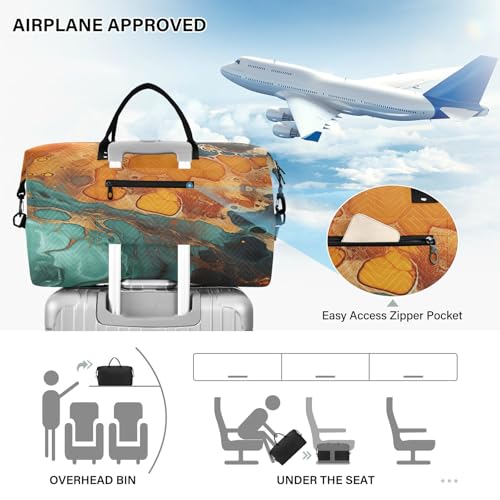 HOT ! Abstract Orange Marble Travel Duffel Bags Gym Bag Weekender Handbag with Toiletry Bag for Women Girls Men