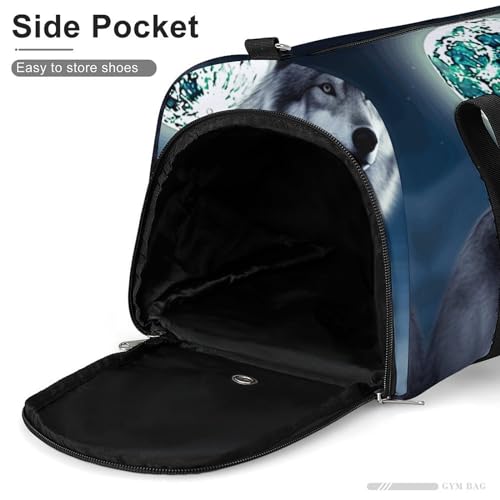 Travel Gym Duffle Bag, Wolf Under Moon Print Duffle Bags,womens Mens Gym Bag,gym Bags,gym Bag with Shoe Compartment 6