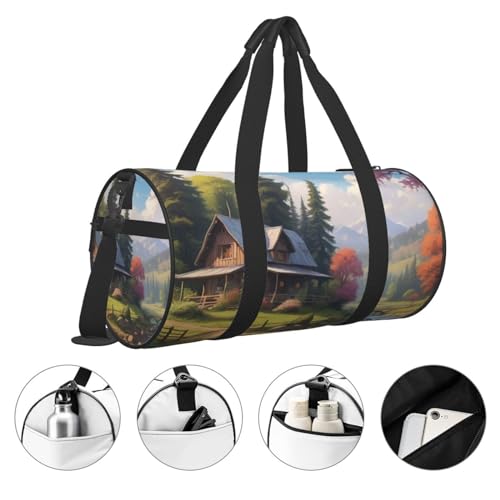Mystic Meadows Printed Travel Bag,Round Personal Item Storage bag,Foldie Duffel Bag for Traveling Vacation,Fitness,Sports 2