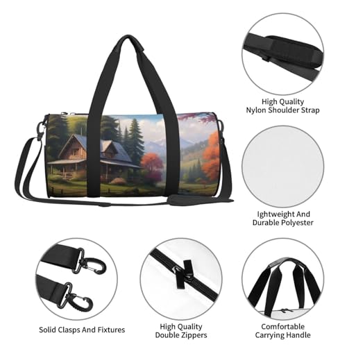 Mystic Meadows Printed Travel Bag,Round Personal Item Storage bag,Foldie Duffel Bag for Traveling Vacation,Fitness,Sports 7