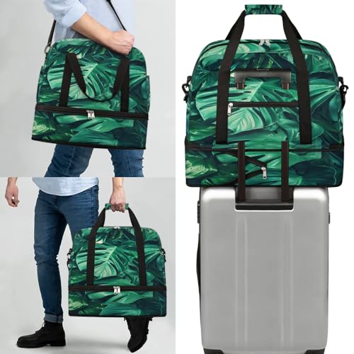 HOT ! Travel Duffel Bag with Shoe Compartment, Green Tropical Leaves Shoulder Weekender Bags for Women, Foldable Waterproof Travel Bag Carry on Bag