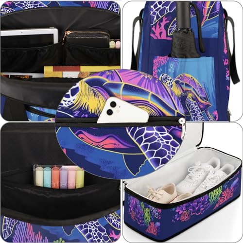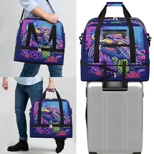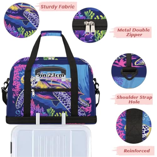 HOT ! Travel Duffel Bag with Shoe Compartment, Colorful Corals Sea Turtle Shoulder Weekender Bags for Women, Foldable Waterproof Travel Bag Carry on Bag