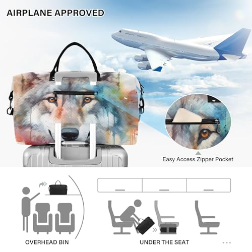 More information about Large Travel Duffel Bag, Doodle Face Wolf Watercolor Sport Tote Gym Bag, Shoulder Weekender Overnight Bag for Women Men, Carry On Luggage with Toiletry Bag