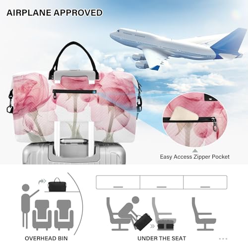 More information about Large Travel Duffel Bag, Rose Red Transparent Print Sport Tote Gym Bag, Shoulder Weekender Overnight Bag for Women Men, Carry On Luggage with Toiletry Bag