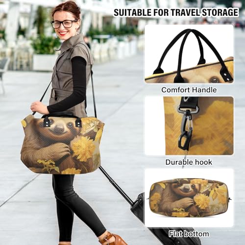 HOT ! Large Travel Duffel Bag, Yellow Flower Sloth Sports Tote Gym Bag, Shoulder Weekender Overnight Bag for Women Men, Carry On Luggage with Toiletry Bags