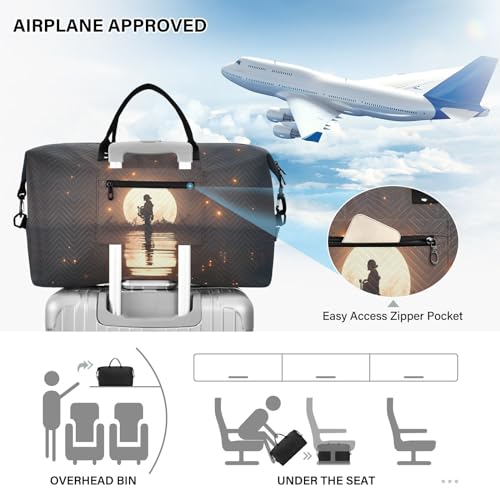 More information about Large Travel Duffel Bag, Astronaut and Moon Sports Tote Gym Bag, Shoulder Weekender Overnight Bag for Women Men, Carry On Luggage with Toiletry Bags