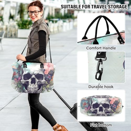HOT ! Large Travel Duffel Bag, Beautiful Skull Floral Sports Tote Gym Bag, Shoulder Weekender Overnight Bag for Women Men, Carry On Luggage with Toiletry Bags