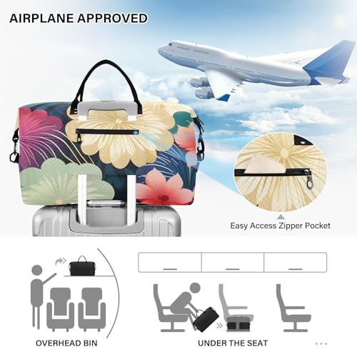 HOT ! Large Travel Duffel Bag, Color Flower Sports Tote Gym Bag, Shoulder Weekender Overnight Bag for Women Men, Carry On Luggage with Toiletry Bags