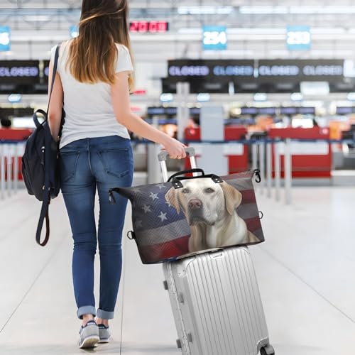 HOT ! Large Travel Duffel Bag, Labrador and American Sports Tote Gym Bag, Shoulder Weekender Overnight Bag for Women Men, Carry On Luggage with Toiletry Bags